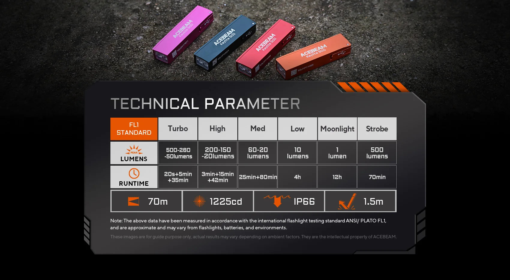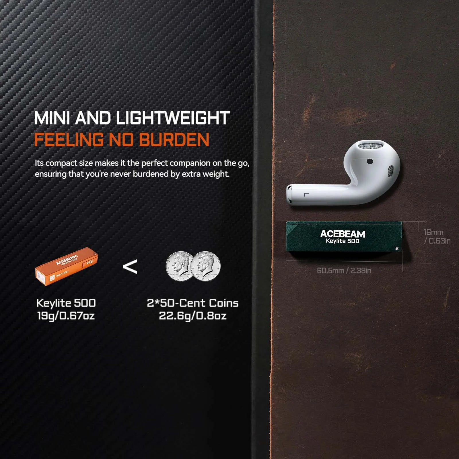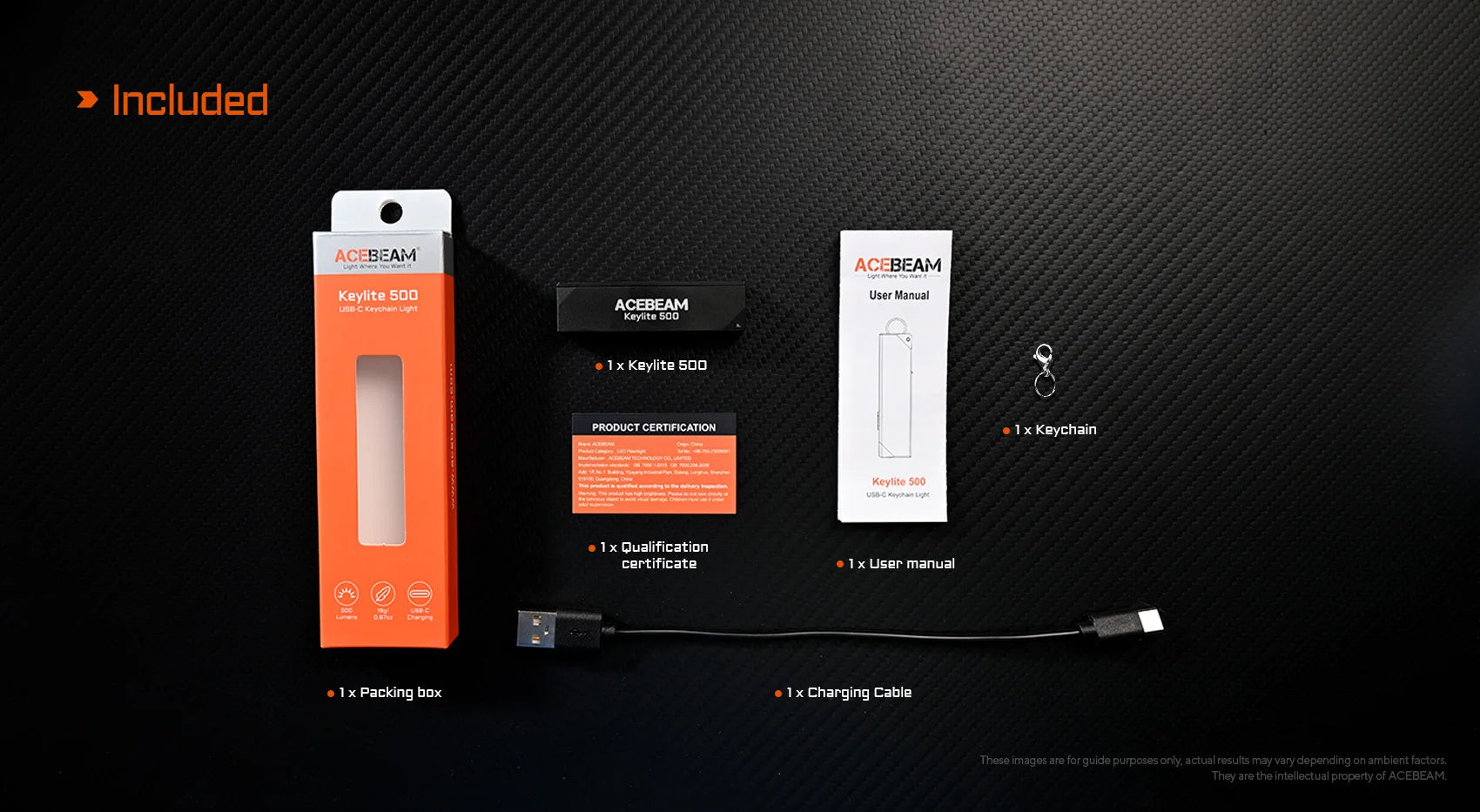 - 1 Γ ACEBEAM Keylite 500 Flashlight