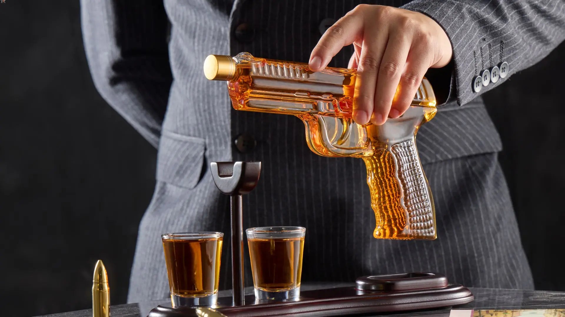 - Unique gun-inspired decanter design with detailed craftsmanship