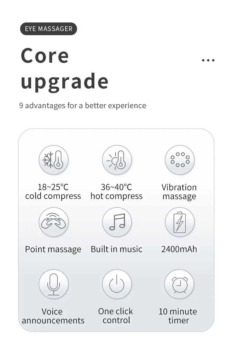 - 12 vibration massage nodes designed for targeted eye-area comfort