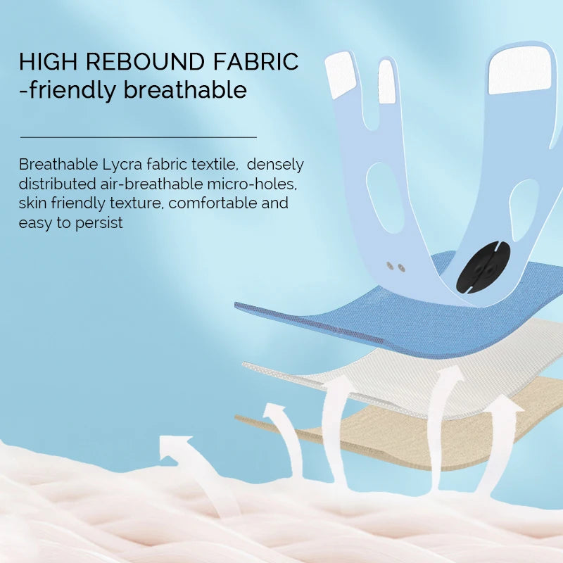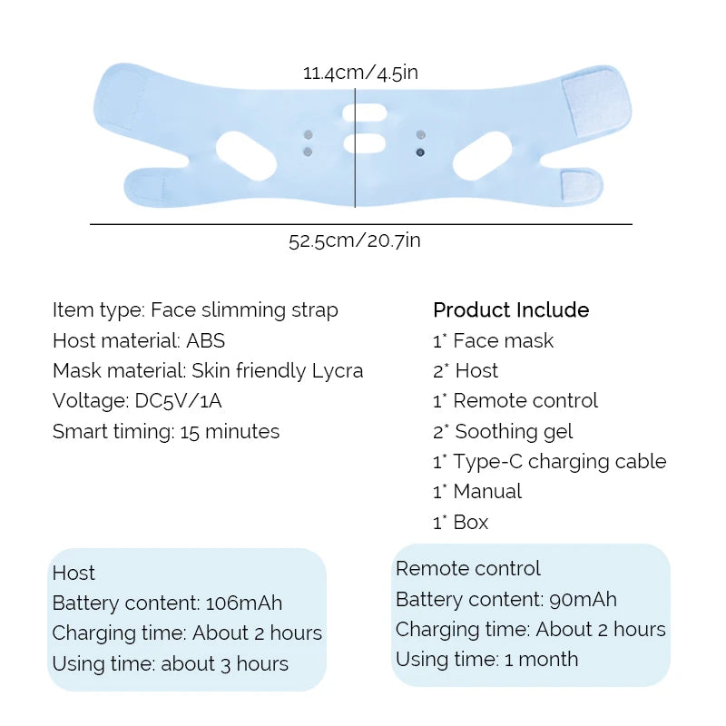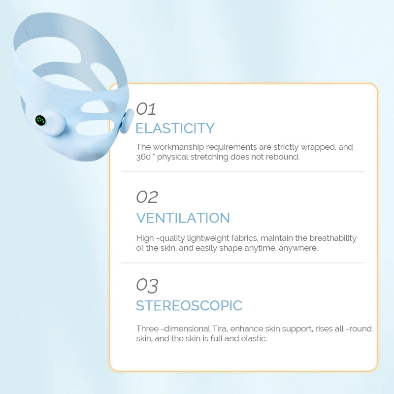 Lycra and a smart timing system, it helps enhance jawline definition, support facial firmness, and