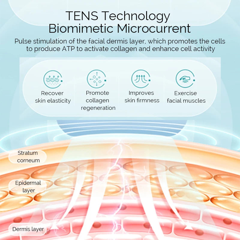 - EMS/TENS low-frequency pulse stimulation for facial muscle engagement