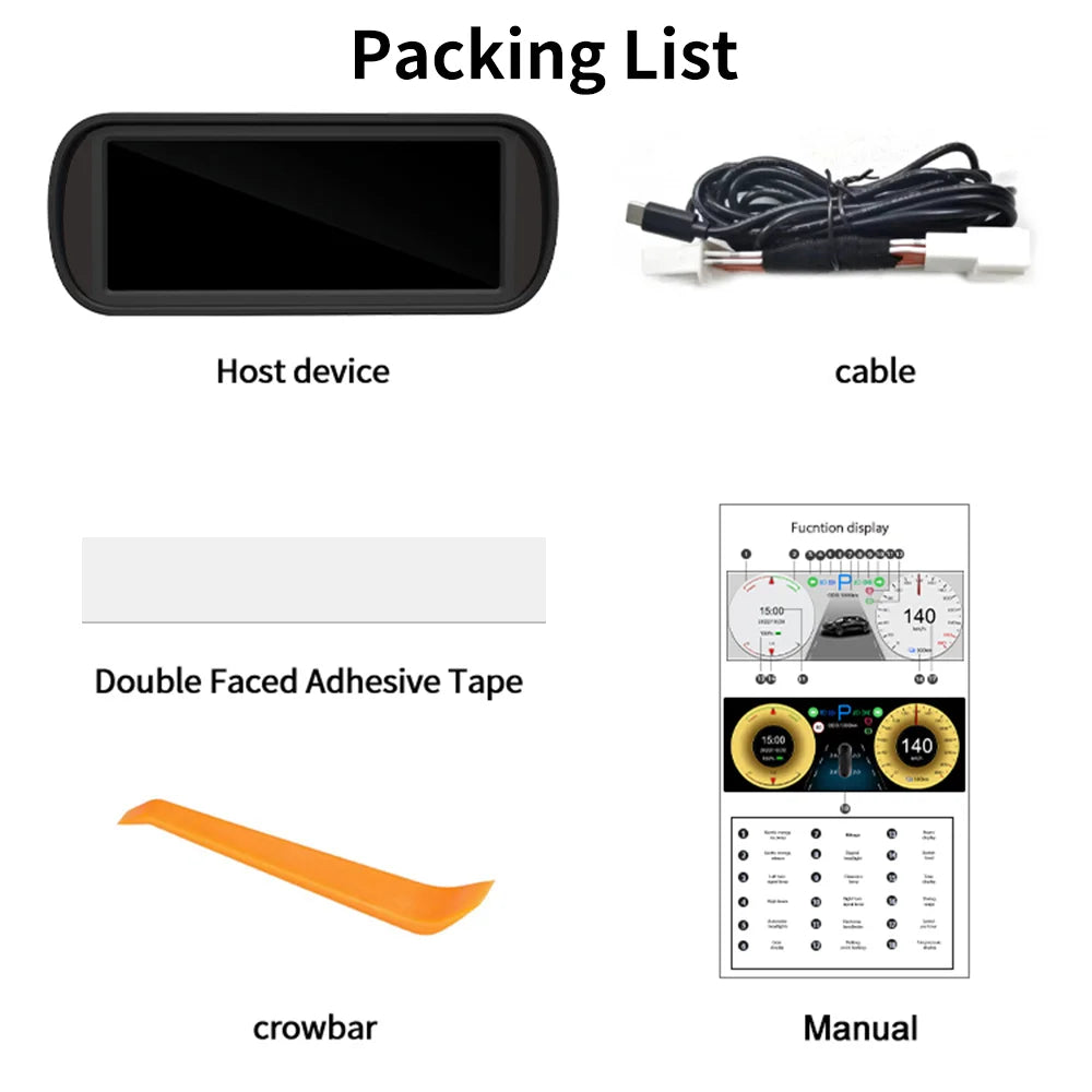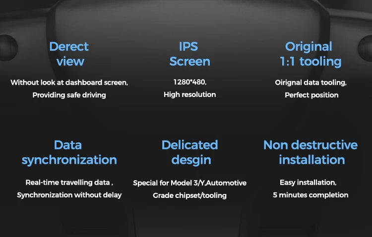 The KWHUD 6.8″ Tesla Instrument Cluster HUD adds a dedicated driver display to your Tesla, presenting critical driving information directly in front of you. Designed to integrate seamlessly with the original vehicle system, it enhances visibility, safety, and driving comfort without altering intelligent driving functions.