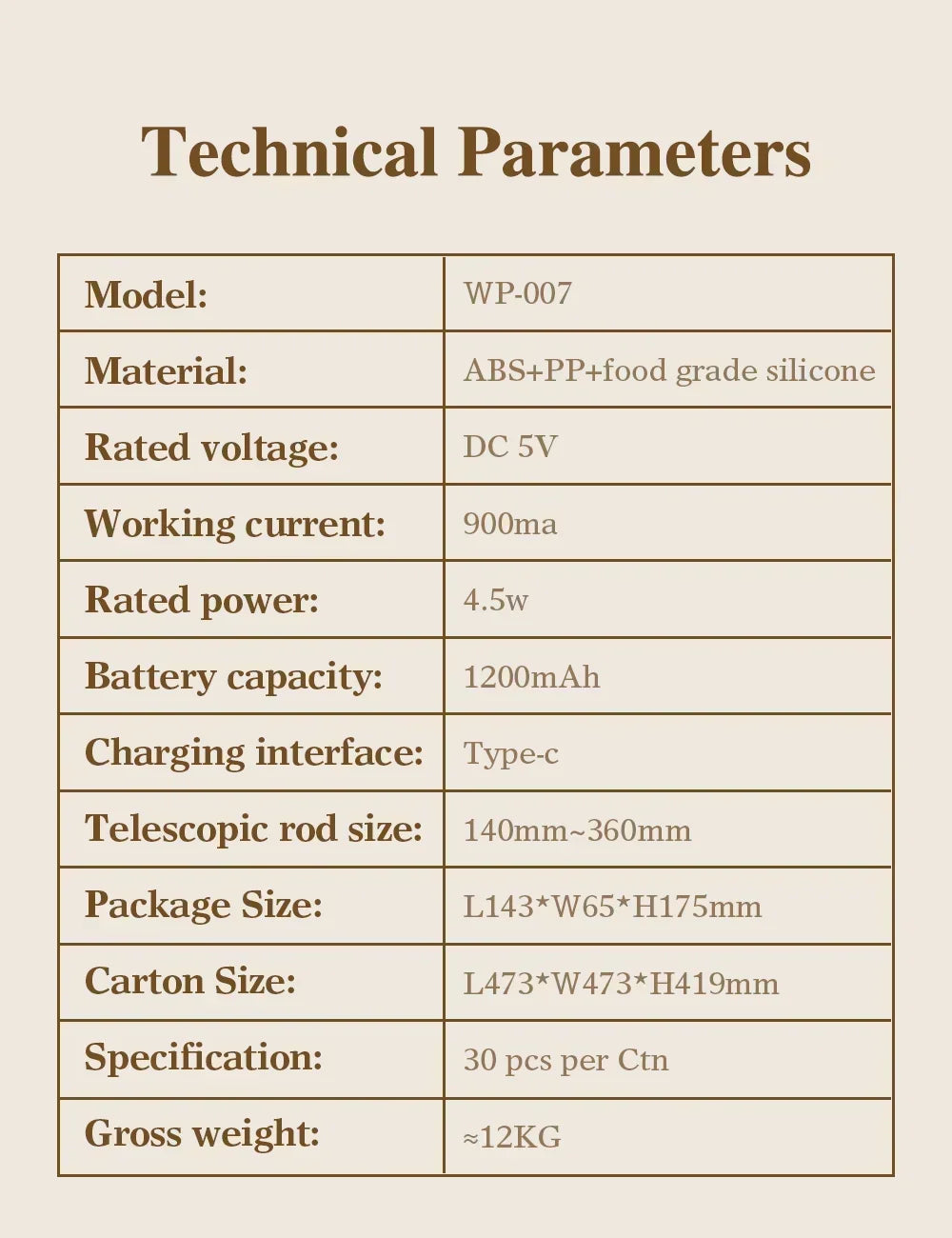 - Material: ABS + food-grade silicone + PP