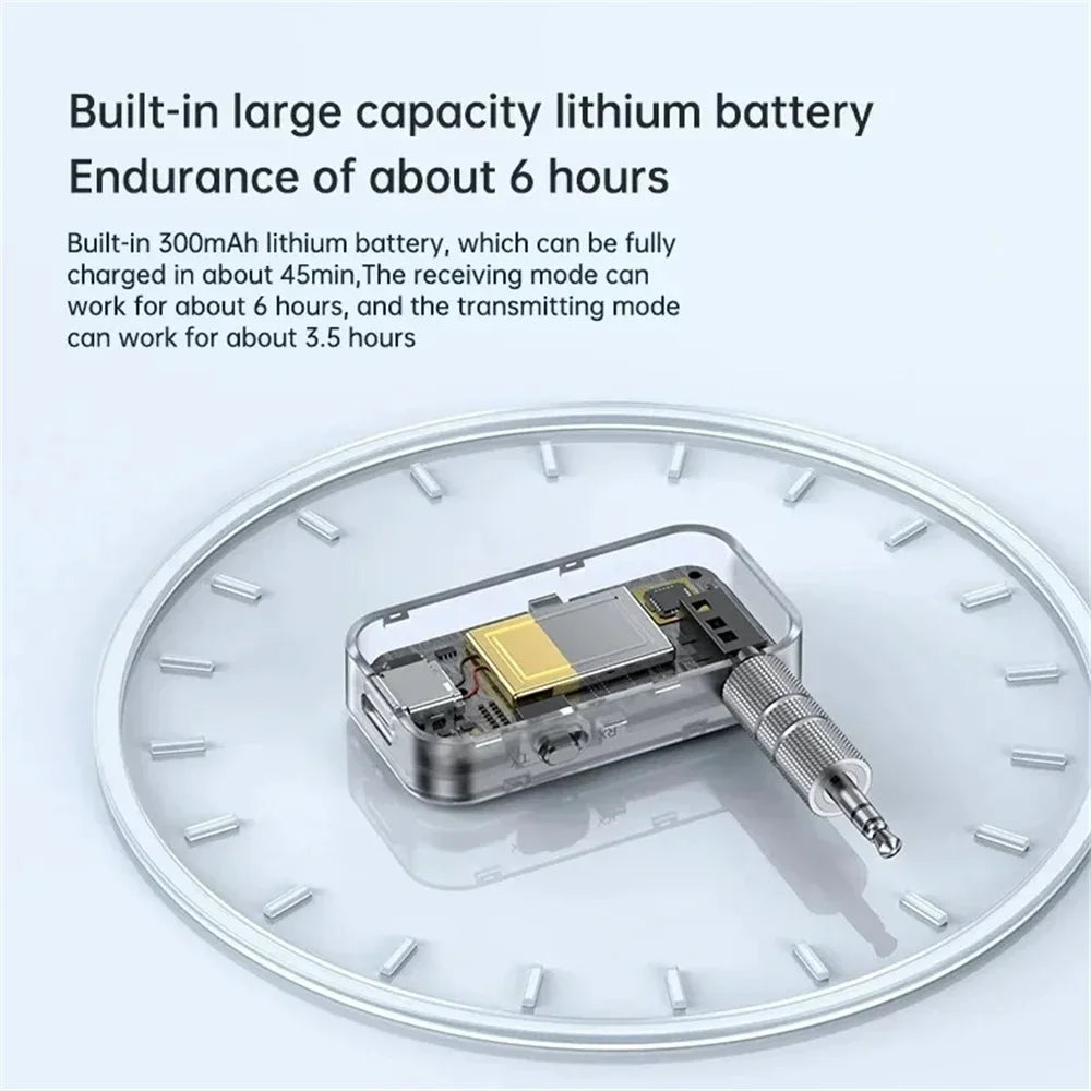 The ICANING T67 Bluetooth 5.3 Audio Adapter is a compact 2-in-1 transmitter & receiver designed to upgrade any 3.5mm AUX device to wireless audio. Whether in your car, airplane, TV, PC, or headphones, it delivers stable Bluetooth 5.3 connectivity with clear Hi-Fi stereo sound.